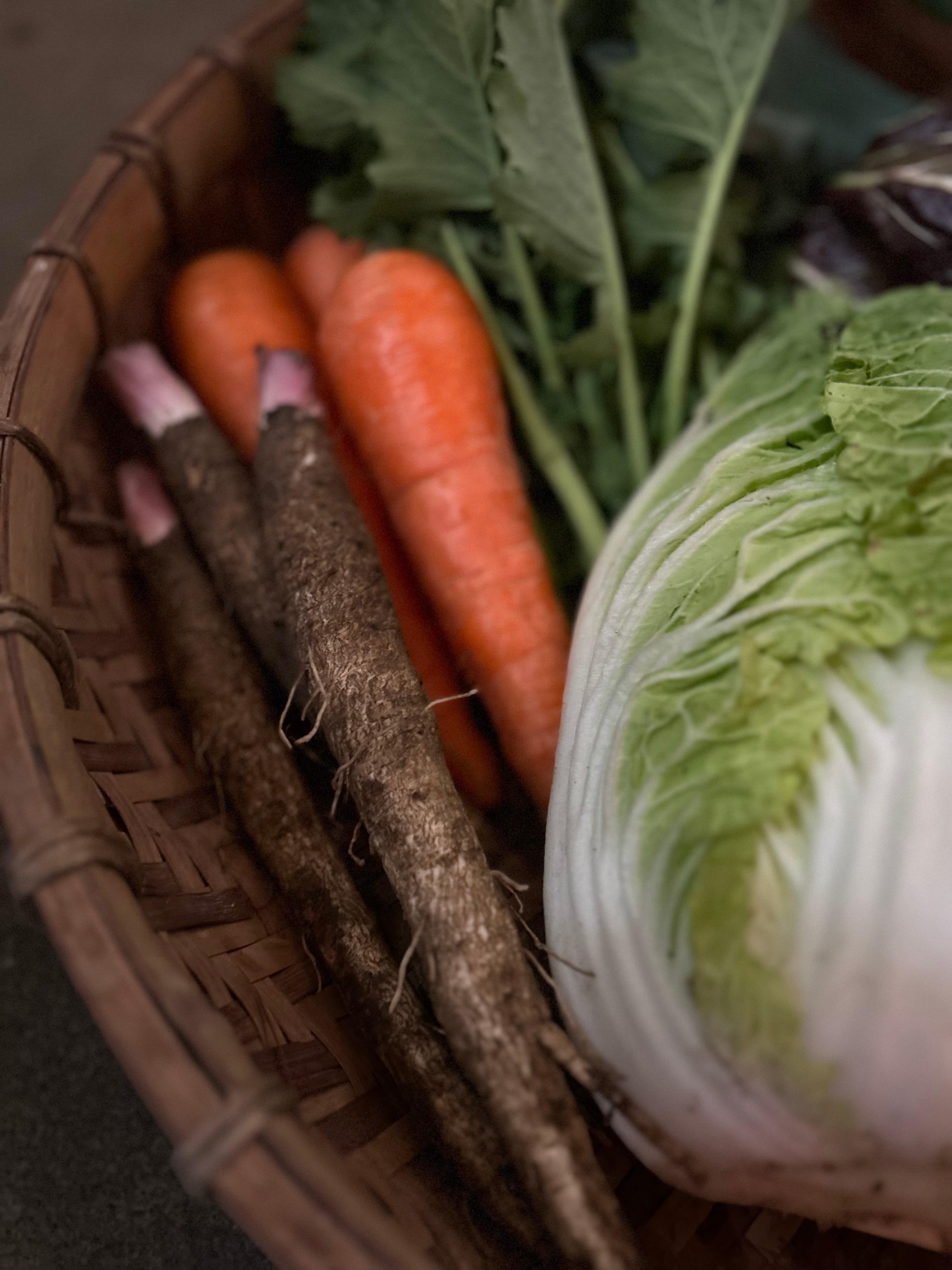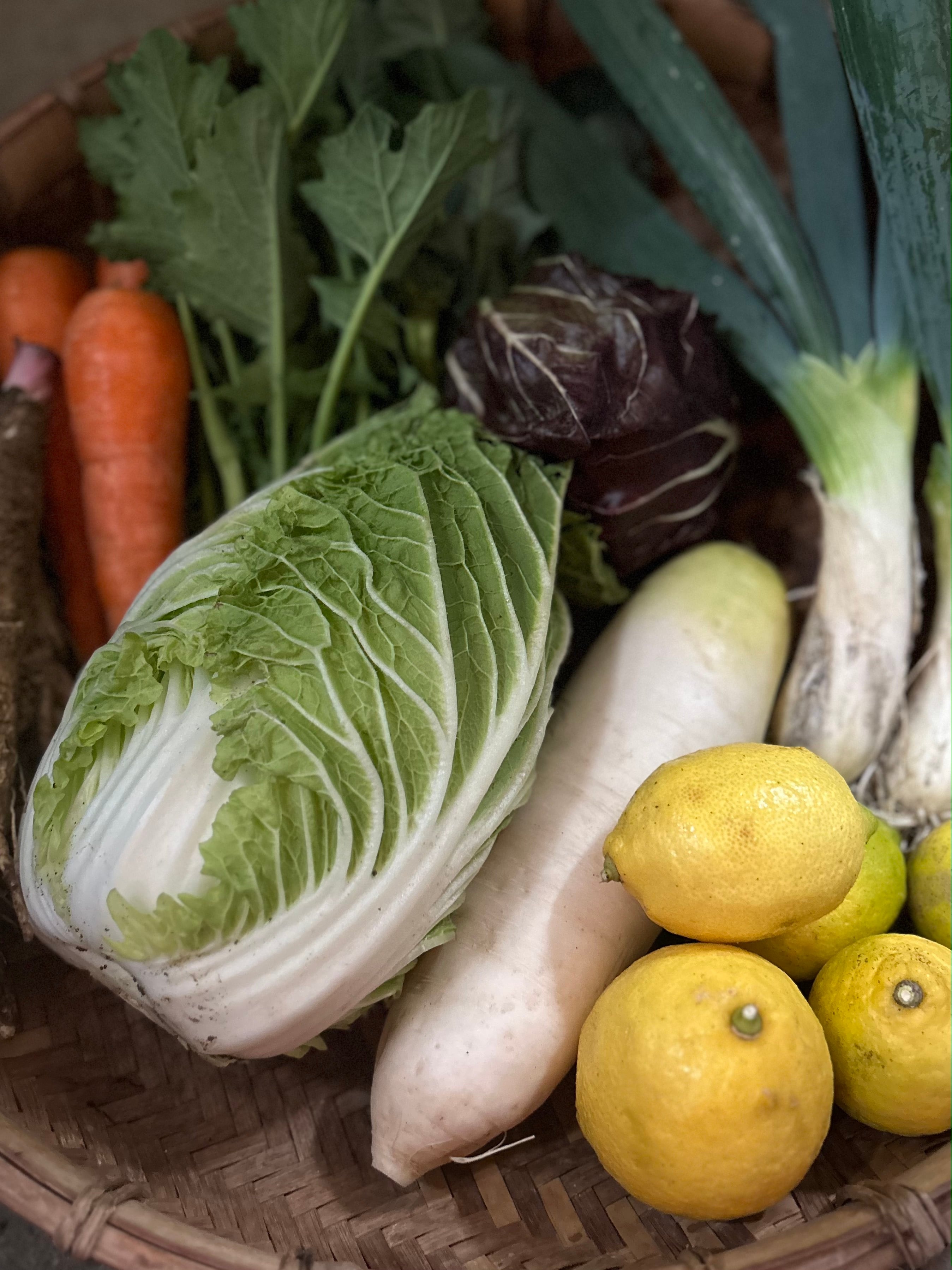 お野菜は渾身の冬野菜。寒さが増して、ぎゅっと美味しさの詰まった冬のお野菜たち。クリスマスに、年末年始に、ぜひお役立てくださいませ。